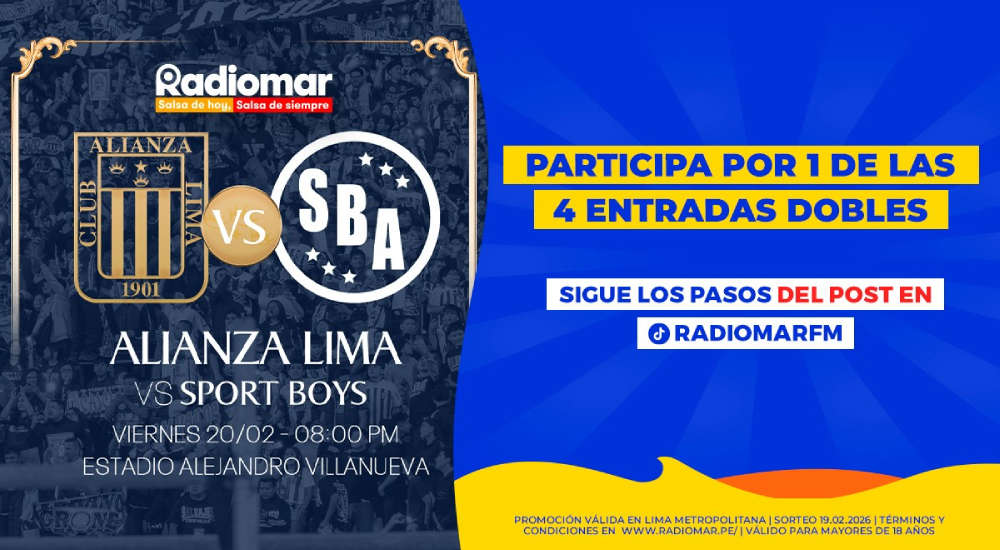 Radiomar premia a sus oyentes con toda la emoción del fútbol: participa por una de las cuatro entradas dobles y alienta en vivo el partido Alianza Lima vs. Sport Boys este 20 de febrero a las 8:00 de la noche en el estadio Alejandro Villanueva. Sé parte de una noche cargada de emoción y puro fútbol junto a tu radio salsera favorita.