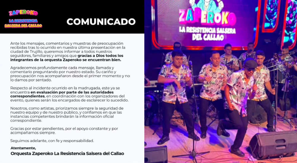 "Gracias por estar pendientes, por el apoyo constante y por acompañarnos siempre. Seguimos adelante, con fe y responsabilidad", indica la parte final del comunicado de la Orquesta Zaperoko - La Resistencia Salsera del Callao.